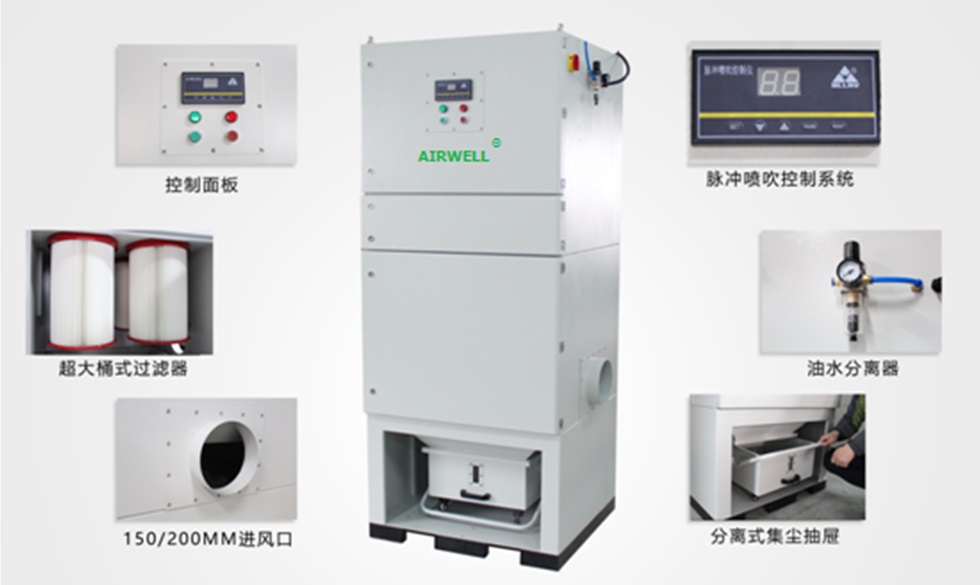 主要用于漂浮、悬浮粉尘的收集与治理,及多工位作业的小型中央集尘系统;适用于研磨、切割、搅拌、喷砂、陶瓷、造纸、钢铁、食品、塑料、木材加工等行业。