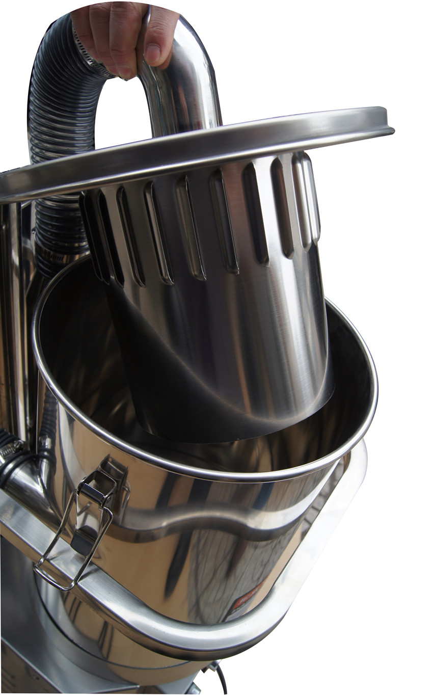 50L分离式不锈钢制作,子母双桶有效搜集粉尘,防止粉尘堵塞过滤装置