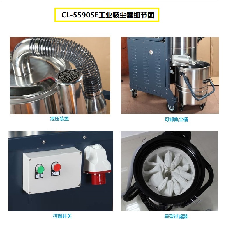 此款工业吸尘器应用范围广泛,从常规的清洁工作到设备配套使用,吸尘,吸铁屑,油污,焊渣等可以同时完成,也可配套一系列诸如机床等设备使用。